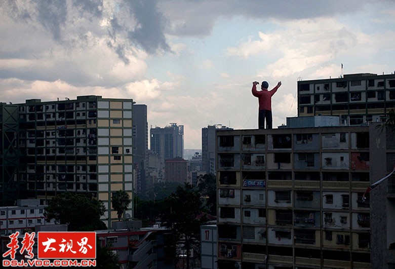 即将到来的总统选举前,一个象征着总统查韦斯的巨大充气娃娃屹立在一栋建筑物上。