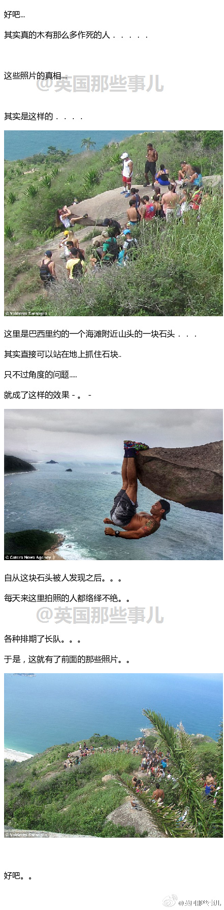 巴西里约海滩附近的一块石头....... 最近这样 zuo 死的照片特别多......... 不过事实的真相..... 戳最后一张你就懂......