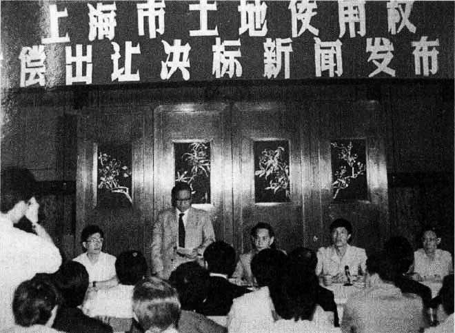 1988年8月,上海市举行土地使用权有偿出让决标新闻发布会