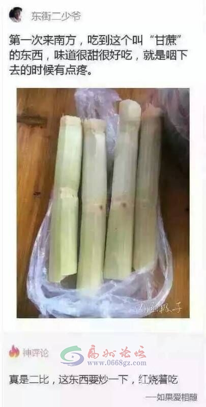原帖由 Guest from 150.68.20.x 于 2016-1-7 17:02 发表 楼主别相信红烧什么的,这个是不能连渣吞下去的,甘蔗只需在嘴里嚼出汁就行了,残渣我们都是吐出来的。