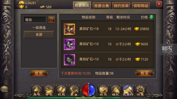 挖黑铁,挂到交易行,换元宝