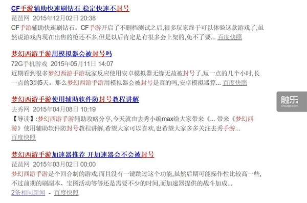在百度搜索一款热门手游加关键词封号,都会弹出大量"防封秘籍"