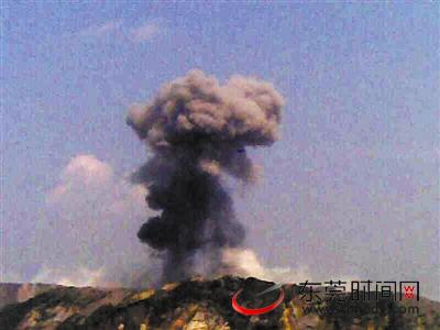东莞时间网讯 昨日下午2时30分许,“轰!”一声巨响惊醒了英德市英红镇午休的居民,紧接而来的一阵冲击波将他们房子的门窗玻璃全部震碎。不少人都以为地震来了,出门一看,只见河对岸山上升起一股巨大的惨白色的蘑菇云。