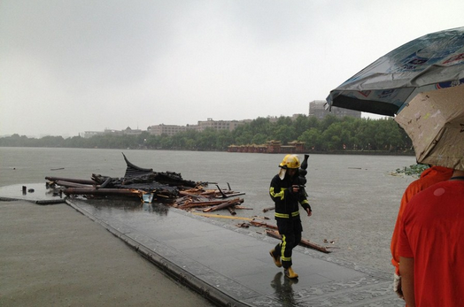 杭州西湖边的集贤亭12日下午在大风中倒塌,成为一个月内西湖景区倒下的第二座仿古建筑。