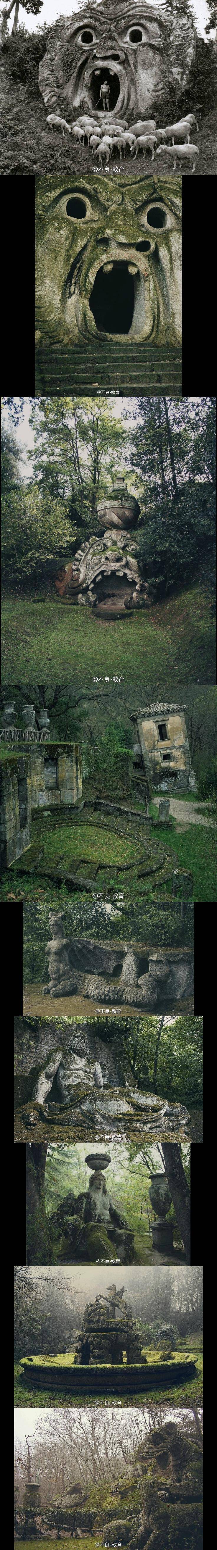 16世纪的意大利怪兽巨石公园“Parco dei Mostri ”,荒凉景象中凝固着古怪的生命力,挺适合拍恐怖电影。