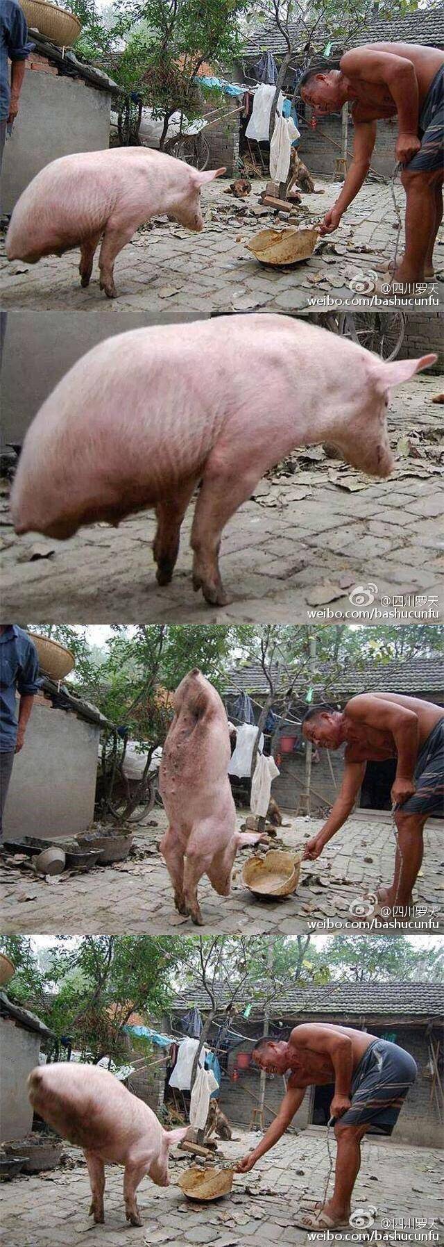 别误导大家,这猪是天生残疾,主人一直训练它,有马戏团想买都不卖的,给它养老送终。