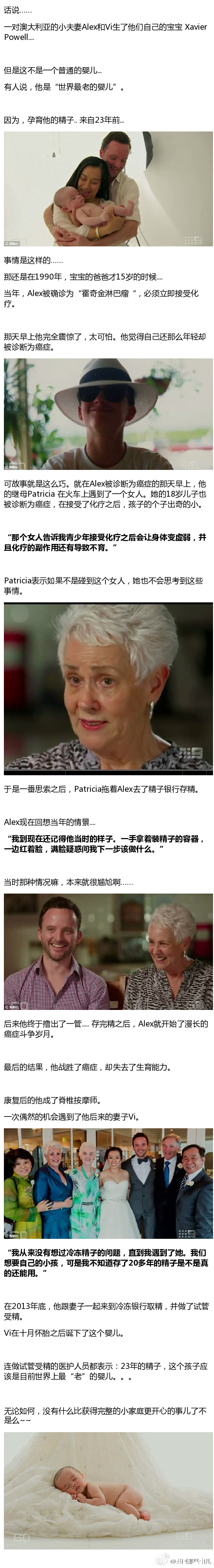 有人说,这个宝宝是“世界上最老的婴儿”…… 因为,那颗精子在孕育成他之前…… 一直被冻了整整23年………..