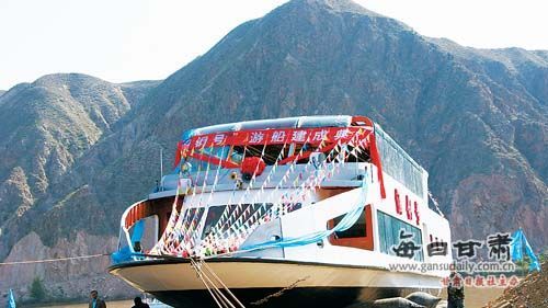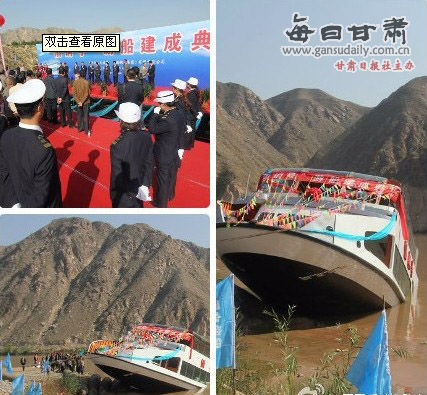 “酒钢号”豪华游船下水的图片。图片来源:每日甘肃网