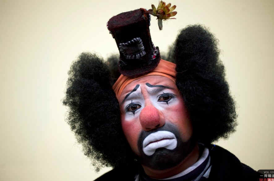 当地时间7月24日,拉美小丑大会在危地马拉举行,会上一名小丑摆好“囧”的姿势让摄影师拍照。Rodrigo Abd/AP