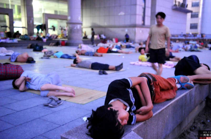 7月25日凌晨,大批求职民工睡在义乌市劳动力市场前的空旷地上。近日,全国各地大批民工来浙江义乌寻找工作,许多民工还没有找到工作,已经陷入“经济紧张”,只好在劳务市场门前露宿。武新文/东方IC