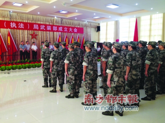 “城管民兵”参加城管局武装部成立大会。钟万芹摄