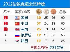 已获得25枚金牌的东道主英国已坐稳第三名的位置,获得12枚金牌的俄罗斯因银牌数多领先韩国队(12金)而暂居第四位,但尚有后劲的俄罗斯,有望拉开与韩国的金牌差距。
