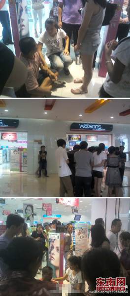 8日下午3点多,福州网友“众创票务”发帖爆料,金山一家屈臣氏店爆出产品问题,据了解,一顾客购买某种面膜产品使用后全身抽筋,后来死亡。当天,死者丈夫及其家属两次到商家门口讨说法。