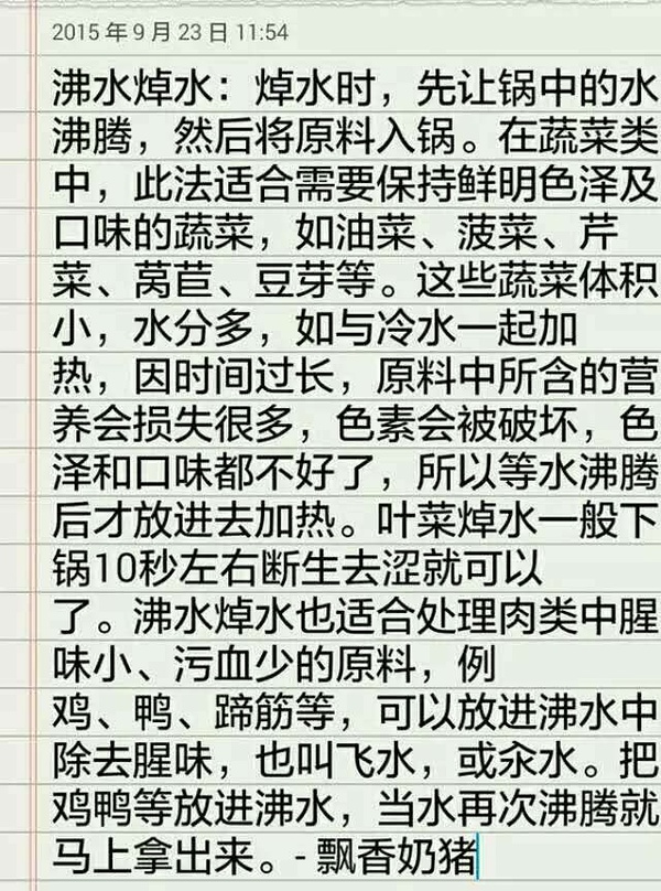 注意:关于沸水焯水的问题,我以前在我微信里发过一个从网上整理来的小贴士。今天再贴一下,供大家参考复习。