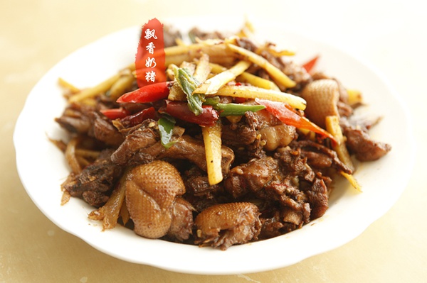 注意:这道菜里面的配菜,嫩姜,指天椒丝都很好吃。有些朋友可能会觉得甚至比鸭肉还好吃,还下饭。所以注意别吃撑咯,飘香奶猪友情提示噢!