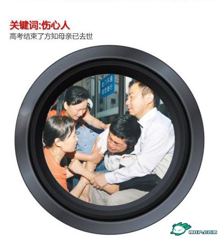 6月8日,考生们陆续走出考场。沈飞的亲戚正等候在考点大门外,人群中惟独不见他的父母。12天前,沈飞的父母到学校参加高考家长会之后,回家途中不幸遭遇车祸,母亲送医后经抢救无效身亡,父亲至今还躺在医院的重症病房里。为了让沈飞安心高考,家人、交警和学校共同编织了一个谎言。