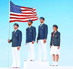 7月10日亮相的美国伦敦奥运代表团官方制服,由美国著名服装品牌创始人拉尔夫·劳伦(RalphLauren)亲自操刀设计,其色调秉承一贯的“国旗范儿”,红白蓝相间的搭配清新亮丽,充满复古海军风格,无论从哪个方面看都充满十足“美国味”。