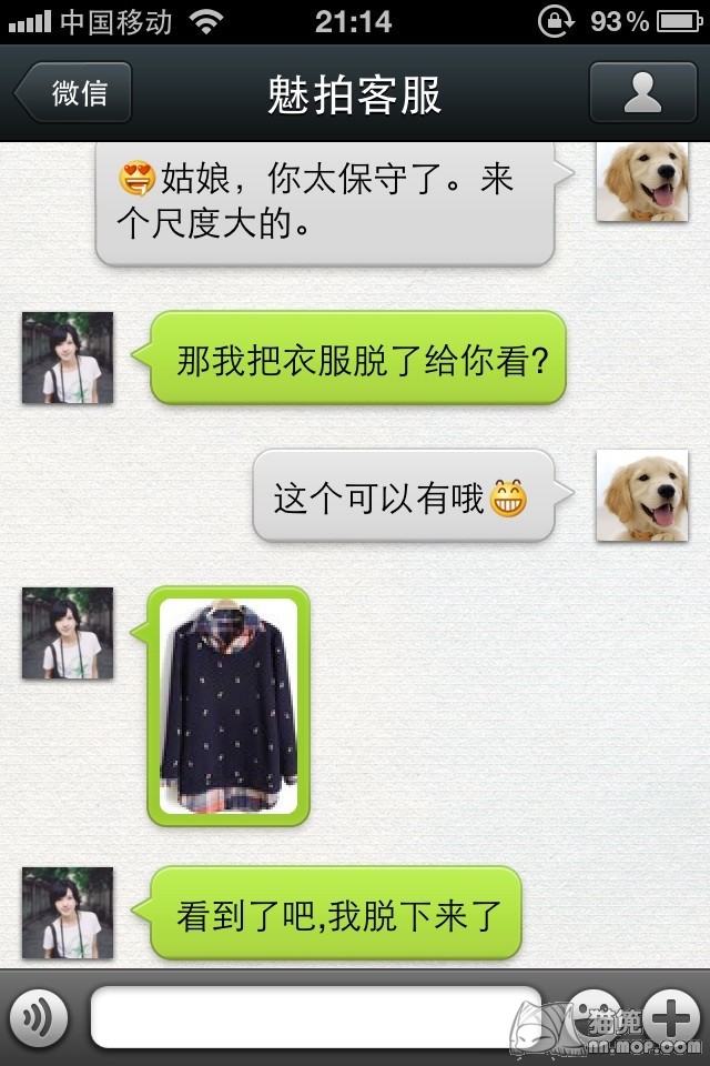 4、一少妇买了iphone打算越狱。到店里不知道怎么说,憋了半天爆了一句:“老板,我要出轨!”老板愣了几秒,果断给她装了微信。