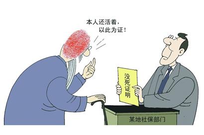 近日,网友曝山东菏泽市牡丹区规定,退休老人要花5元钱买“死没死证明”,并亲自到场证明没死,才能领取退休金。当地相关部门回应,该证明不是“死没死证明”,而是指纹验证表;至于是否卖5元,工作人员称“好像是这样”。(3月22日《南方都市报》)