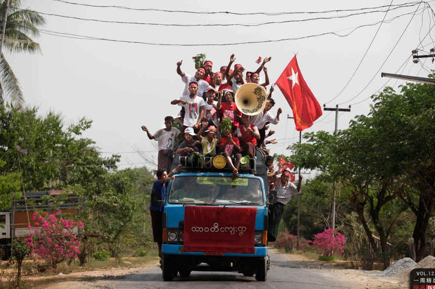 当地时间3月31日,缅甸华廷卡,昂山素季的支持者们沿街造势。当日,缅甸举行议会补选。4月2日,昂山素季宣布在缅甸议会补选中获胜。这可能为五十年来都由军政府控制的议会翻开新篇章。AP Photo/Altaf Qadri