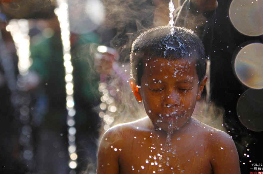 当地时间4月6日,尼泊尔首都加德满都,一名男孩在Balaju Baise Dhara泉水处沐浴。Balaju Baise Dhara是泉水汇聚之地,有22个流出泉水的石嘴。当地人认为,用这里的水沐浴能够去除疾病。REUTERS/Navesh Chitrakar