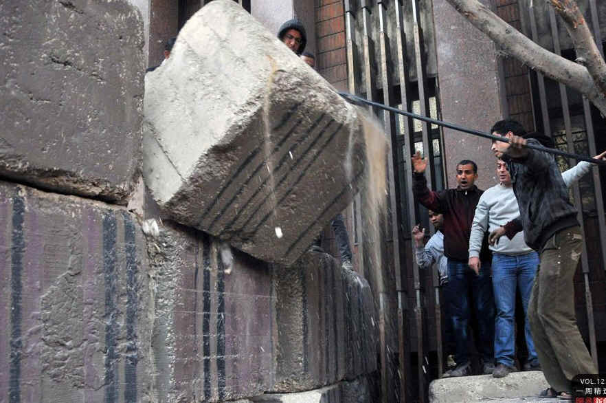 当地时间3月31日,埃及首都开罗Qasr al-Aini大街,人们试图拆除由军方建立的混凝土墙。当地媒体称,军方竖立该墙是为了隔离Kamal al-Ganzouri总理的指挥部与解放广场。REUTERS/Stringer