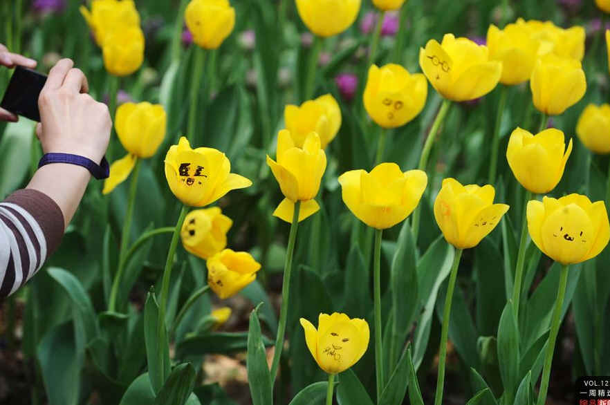 4月3日,武汉植物园里各色郁金香纷纷绽放,不知道是谁第一个在盛开的黄色郁金香花瓣上画上“欢笑”的表情,过往的好奇游客纷纷效仿涂鸦,很快一片郁金香遭了殃,愤怒、伤心、调皮等各种表情布满花瓣。IC