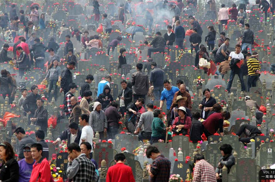 4月4日清明节当日,福建晋江深沪老山陵园,前来扫墓的人流达到顶峰。