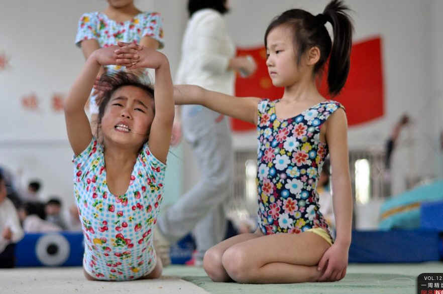 上海某小学,两名小女孩在进行体操训练。 2012/CFP