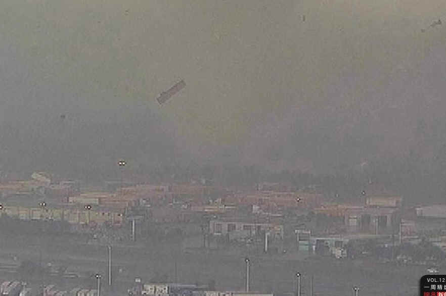 当地时间4月3日,美国达福地区,一辆大拖车被龙卷风卷到空中。当天,两个破坏力强大的龙卷风席卷了美国中南部地区。