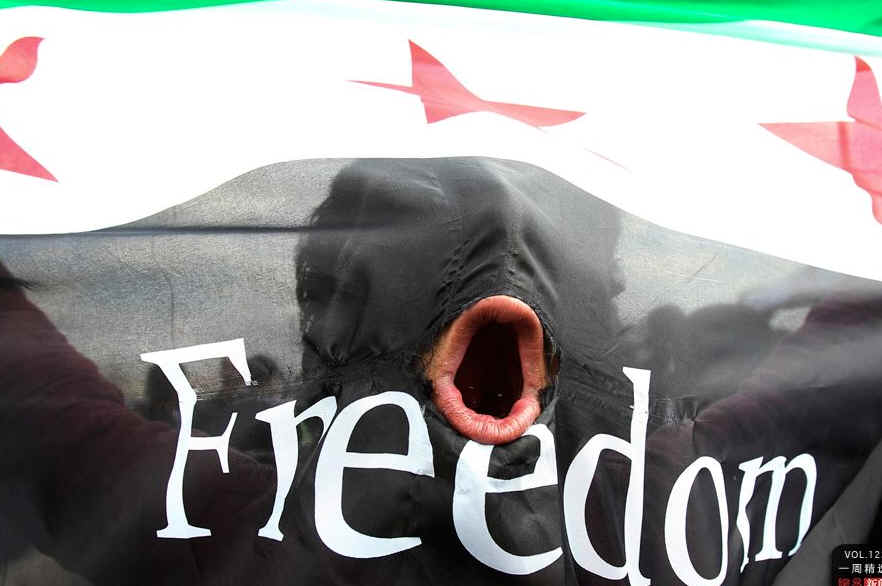 当地时间3月30日,约旦首都安曼,叙利亚难民参加反对叙利亚总统阿萨德的示威活动。REUTERS/Ali Jarekji
