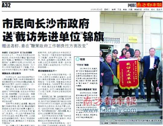 » 长沙两市民送“截访先进单位”锦旗被拘9天