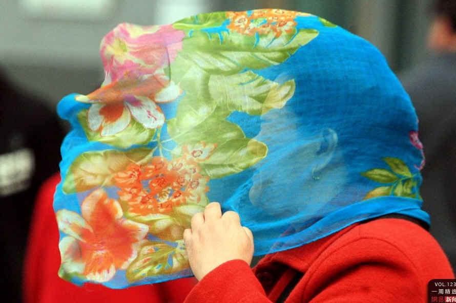4月10日,辽宁沈阳,市民在大风沙尘天气里出行。初春到来,中国北方多地出现大风天气,辽宁、北京等地均发布过大风预警。黄金崑/摄
