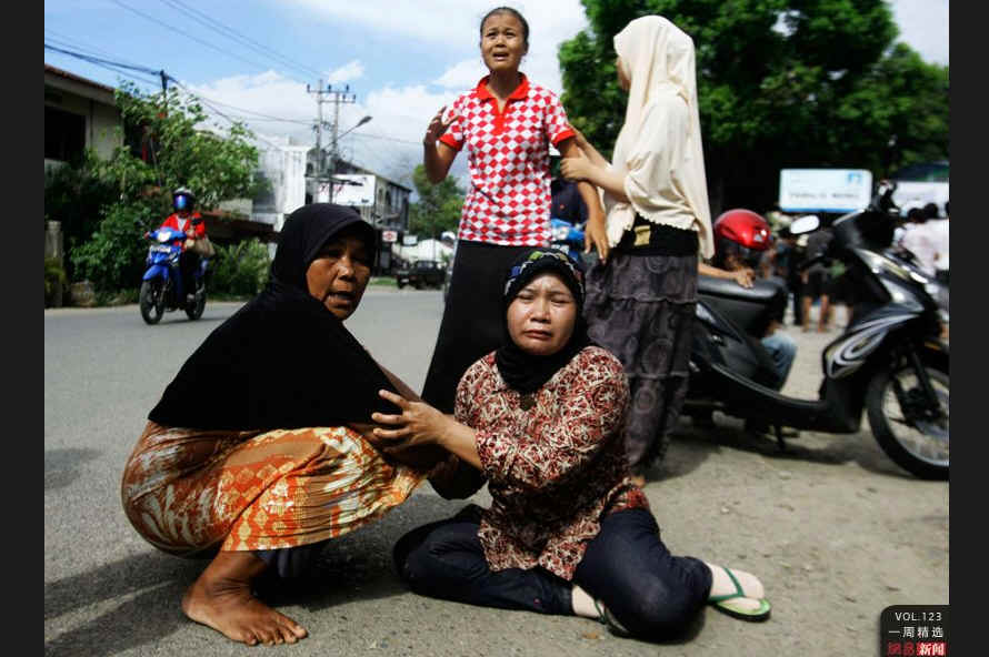当地时间4月11日,印度尼西亚班达亚齐街头,几位妇女露出惊慌的神情。当天,印尼发生了8.5地震,包括中国在内的多个国家均有不同程度震感。REUTERS/ Junaidi Hanafiah