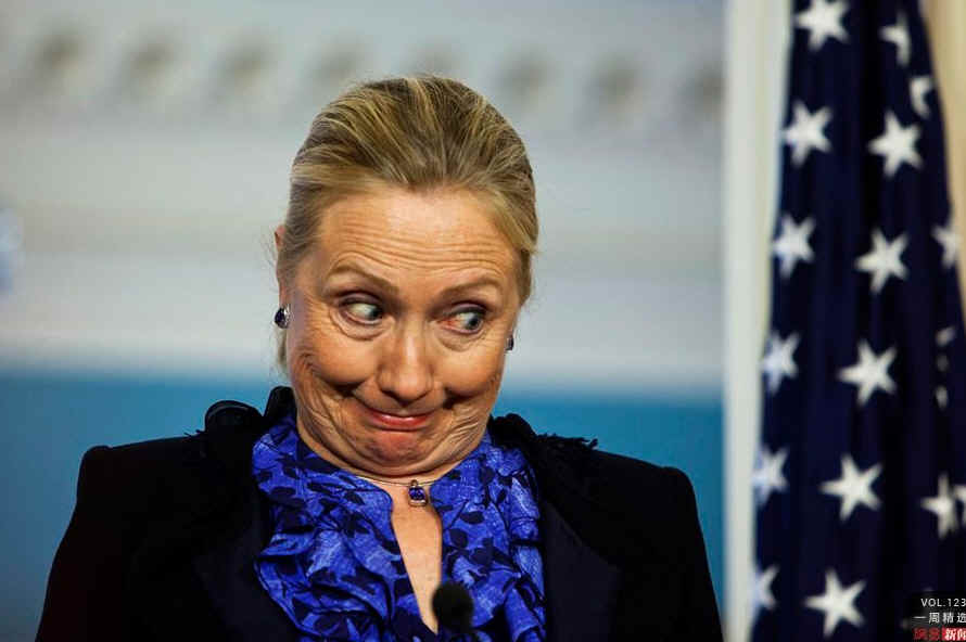 当地时间4月10日,美国华盛顿,美国国务卿希拉里露出诙谐的神情。当天,她与日本外务大臣玄叶光一郎举行双边会谈后出席发布会。CFP