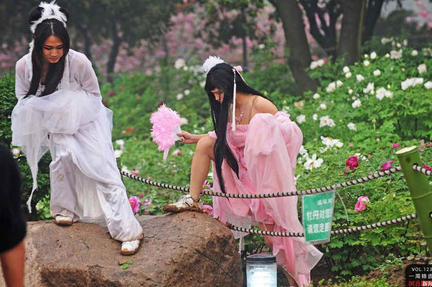 4月9日,湖北武汉,一群“伪娘”亮相武汉东湖牡丹园。这群“伪娘”是武汉“爱丽丝伪娘团”的成员。该团对团员要求严格,“腿要又细又长,个子不能太魁梧,脸要长得秀气俊俏。”CFP
