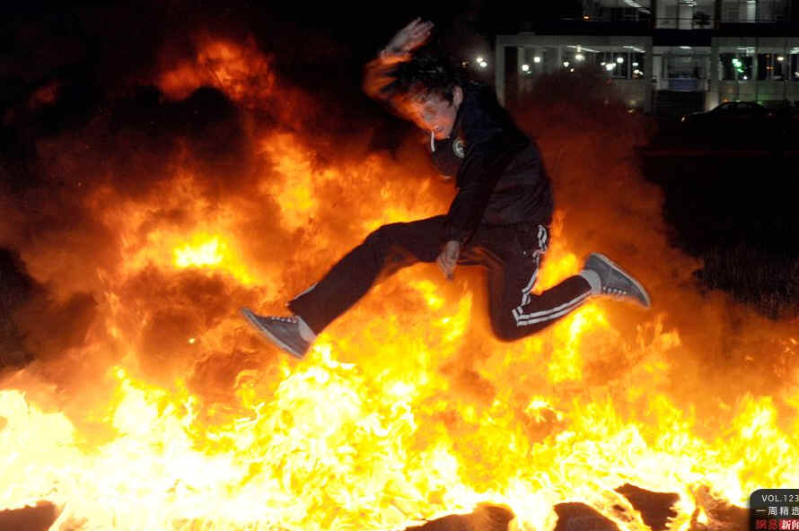 当地时间4月11日晚,格鲁吉亚第比利斯,一名青年跃过篝火,庆祝第比利斯的一个民间节日。“跳火”是一个净化灵魂的仪式,据说能驱逐邪恶。但是,大约有12个人因为烧伤被送往医院。AFP PHOTO /VANO SHLAMOV