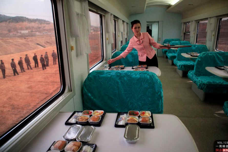 当地时间4月8日,朝鲜平壤附近,女列车服务员为赶往平壤拍摄卫星发射的外国记者准备午餐。4月13日,卫星发射失败。AP Photo/Ng Han Guan
