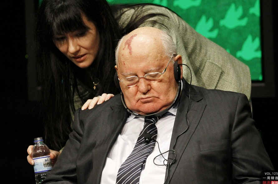 当地时间4月23日,美国芝加哥,前苏联总统戈尔巴乔夫在诺贝尔和平奖峰会现场睡着了。当日,诺贝尔和平奖峰会在美国芝加哥举办,戈尔巴乔夫、美国前总统吉米·卡特等人参加了这一峰会。本届峰会主题为“和平的新挑战”。AP Photo/Charles Rex Arbogast