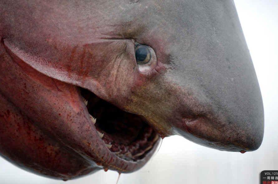 当地时间4月22日,克罗地亚,"Ogorje"船的船员捕获了一只鲨鱼。Goran Kovacic/PIXSELL/CFP