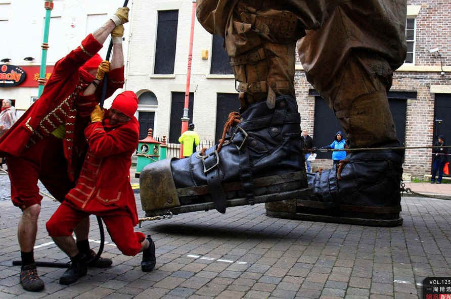 当地时间4月21日,英国利物浦,两名男子操纵巨型提线木偶。当日,法国Royal de Luxe剧团的两个巨型木偶在利物浦街头上演木偶剧《海洋奥德赛》。这是利物浦纪念泰坦尼克号沉没100周年的系列活动之一。泰坦尼克号1912年在利物浦注册,于当年4月15日执行处女航时与冰山相撞沉没。CFP