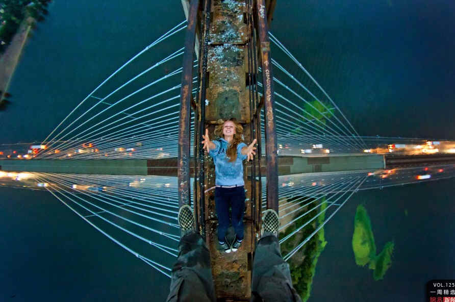当地时间4月23日,俄罗斯,一名女孩在拉索大桥顶端拍照留念。俄罗斯有一群热爱“登高”的青年,他们的爱好便是攀爬一座又一座建筑物。VADIM MAHOROV/IC