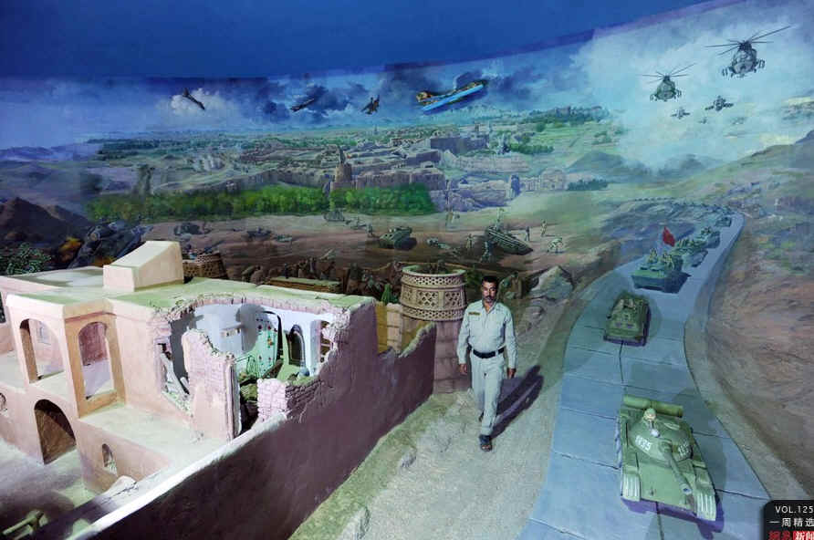 当地时间4月27日,阿富汗赫拉特的“圣战”博物馆,一名员工走过立体模型。该博物馆是为纪念“阿富汗战争”而建的。1979年,苏联大举入侵阿富汗,导致了长达10年的战乱。战争最终以苏联失败告终。AFP PHOTO/AREF KARIMI