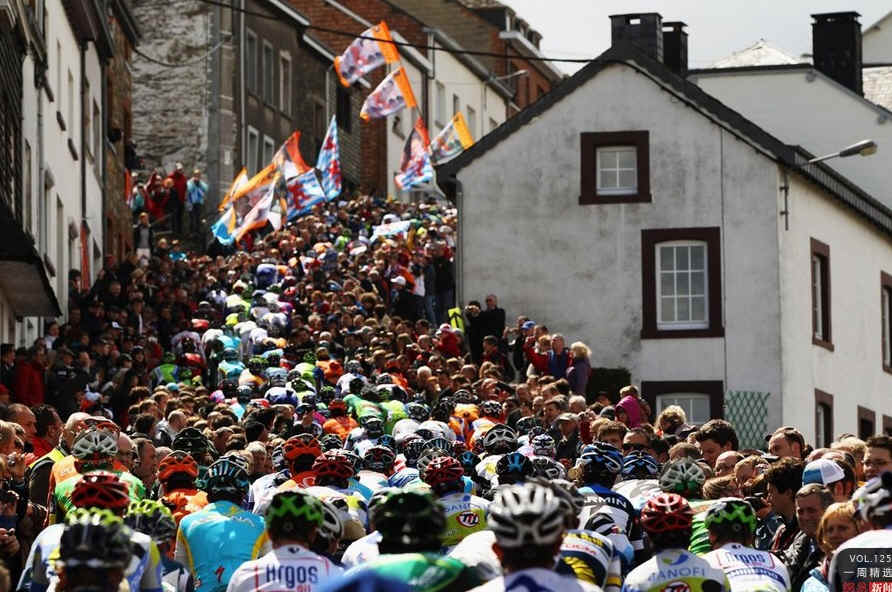 当地时间4月22日,比利时列日市,自行车选手们在攀爬Cote de Saint-Roch。当日,第98届列日-巴斯托涅自行车公路赛开赛。Bryn Lennon/Getty Images