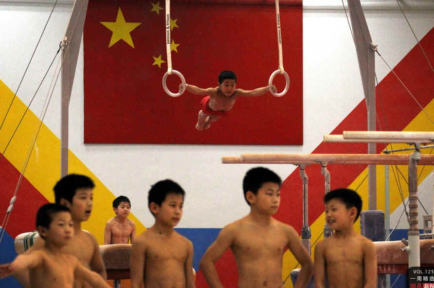 4月21日,北京什刹海体校,参加训练的小体操队员。REUTERS/David Gary
