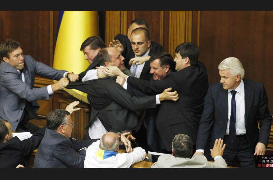 当地时间5月24日,乌克兰基辅,议会上执政党和反对派发生激烈的肢体冲突。乌克兰执政党提出将俄语作为官方语言,遭到反对派强烈反对。乌克兰议会并不是第一次上演“全武行”,2010年12月,百名议员因前总理季莫申科被刑事立案调查并被限制出境一事大打出手,5名议员受伤住院,2人伤势严重。REUTERS