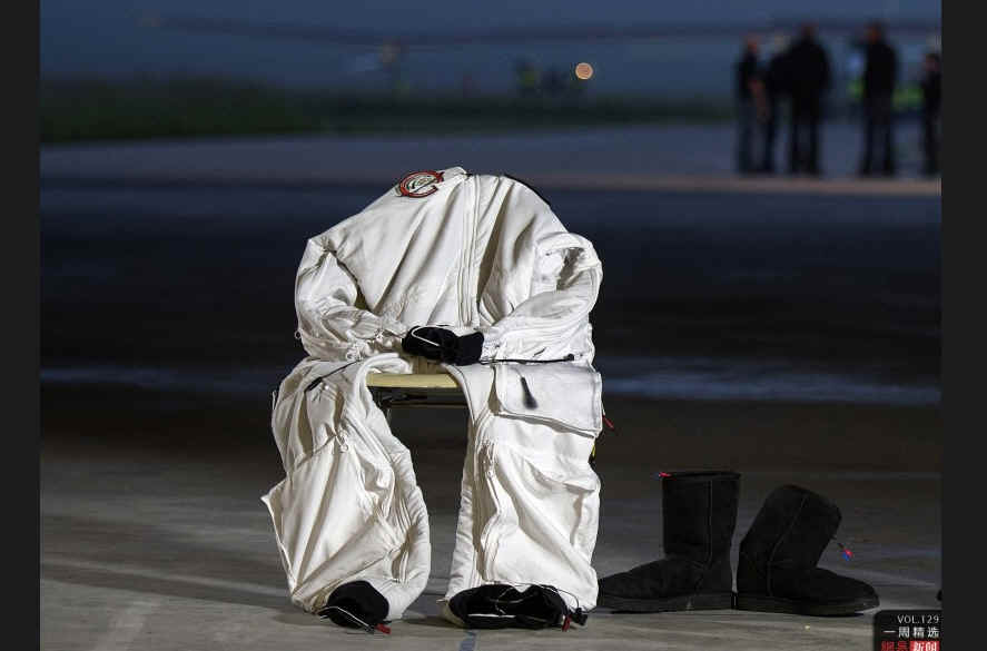 当地时间5月24日,瑞士佩耶纳,瑞士公司Solar Impulse总裁兼飞行员Andre Borschberg的驾驶服,他将穿上这套衣服,驾驶太阳能动力试验机Solar Impulse飞机,并进行首次跨洲际飞行。 AFP/FABRICE COFFRINI