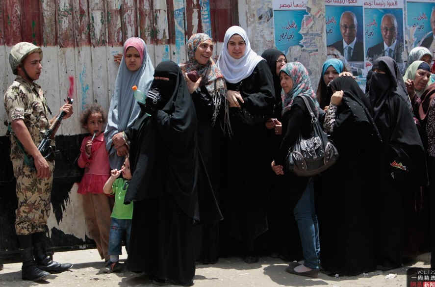 当地时间5月24日,埃及开罗,街头排队参加投票的民众。据悉,埃及于5月23日至24日进行穆巴拉克下台以来的首次总统选举,近日,埃及人的选举热情空前高涨,首都开罗的大街小巷竖起以英阿两种文字书写的蓝色告示牌,呼吁民众参加总统选举投票。REUTERS/Ammar Awad