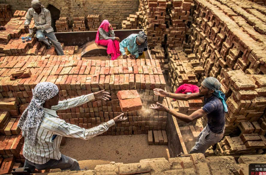 当地时间5月23日,印度的砖窑工人在工作。制砖业是印度雇佣人数最多的行业之一,这里的工人每天需要工作8到9个小时,每个月的工资为50到100美元。CFP