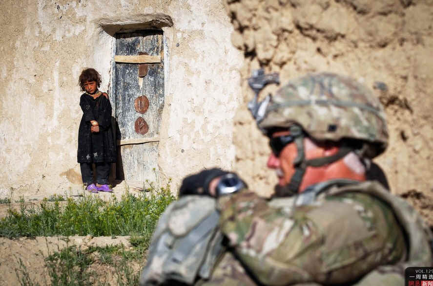 当地时间5月19日,一位阿富汗女孩看着不远处的美国士兵。近日,北约刚结束讨论阿富汗问题的芝加哥峰会,决定将在2013年年中向阿富汗政府移交安全控制权,2014年年底撤出全部作战部队,只留少部分人员为阿富汗安全部队提供培训和咨询。REUTERS/Danish Siddiqui